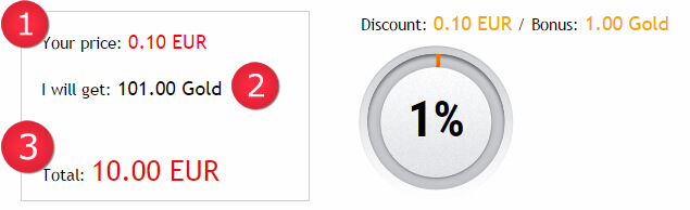 - The amount of game currency that you will receive with the bonus.